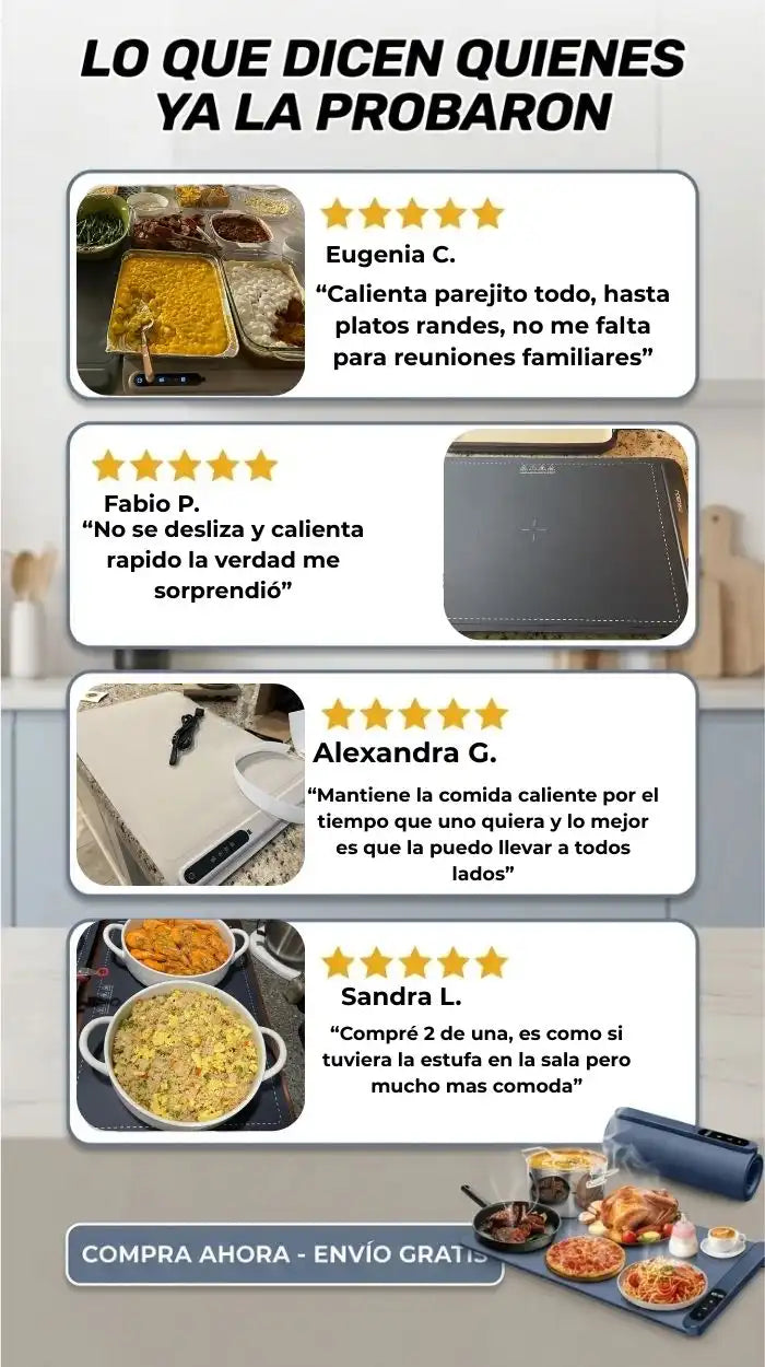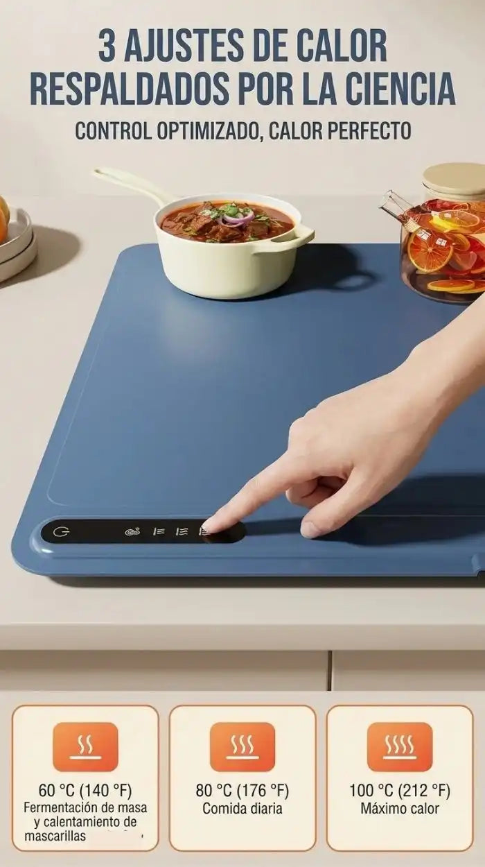 Calienta en pocos minutos y mantiene la temperatura constante.