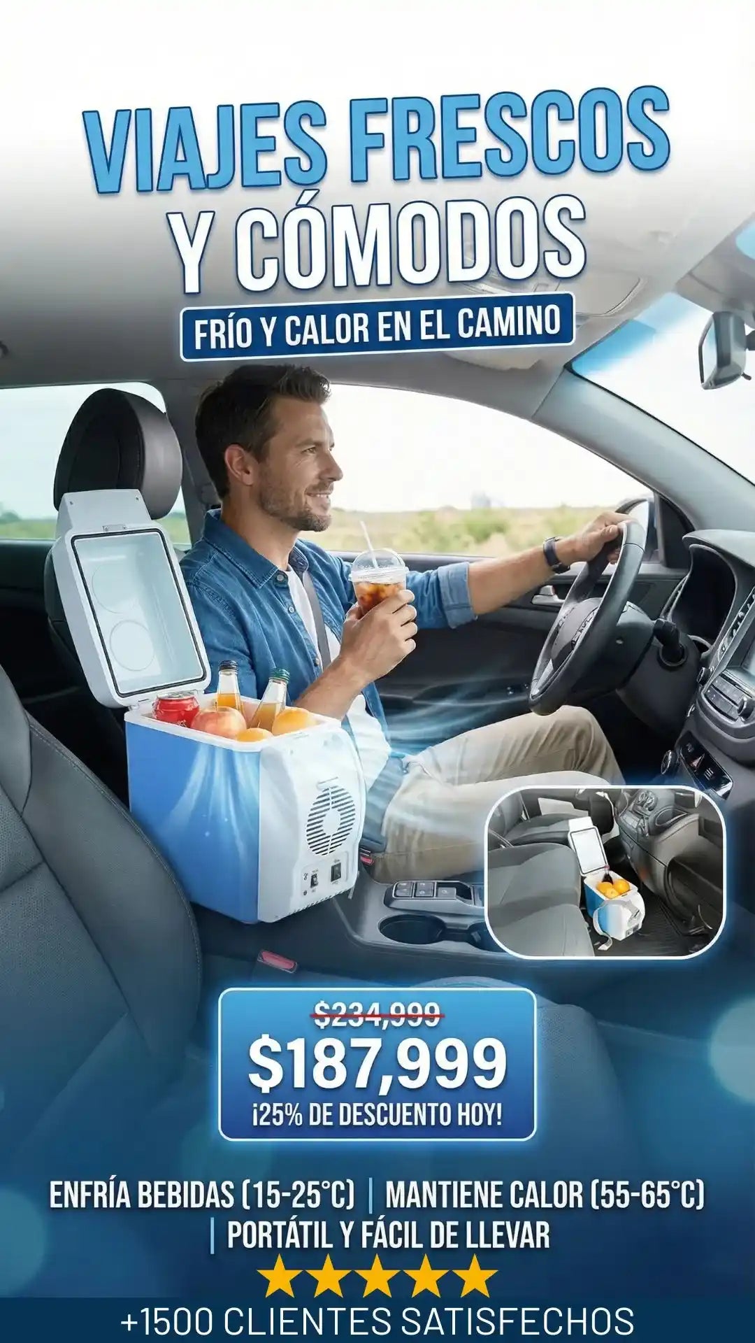 Sí. Cuenta con doble función: modo enfriador para mantener bebidas y alimentos frescos, y modo calefacción para conservar o calentar comidas y bebidas como café, sopas o snacks.