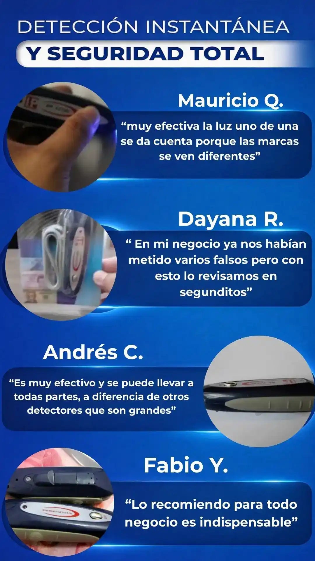 Sí — solo pasa el detector sobre el billete y en segundos sabrás si es auténtico o sospechoso, sin necesidad de conocimientos técnicos.