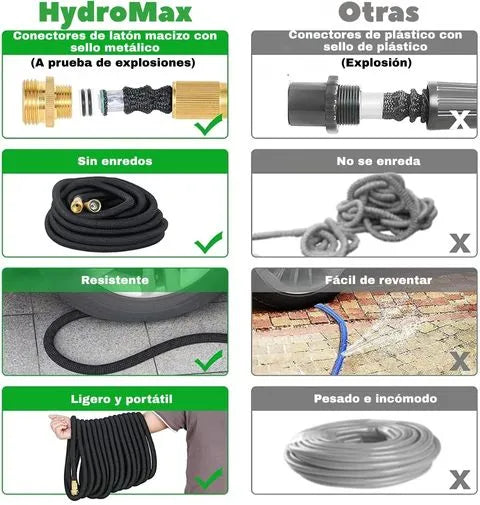 Pensada en cada detalle: conectores resistentes, un núcleo de látex triple que evita explosiones y un peso ligero. con HydroMax, disfrutarás de potencia, seguridad y comodidad en cada riego. 🌿🚿