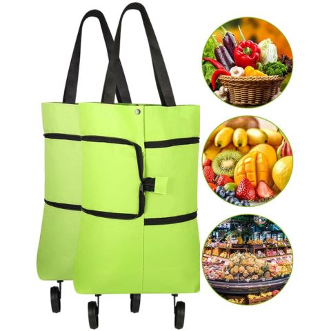 Se puede utilizar como una bolsa de mano plegable para llevar y también como carrito de compras reutilizable para supermercado o compras diarias